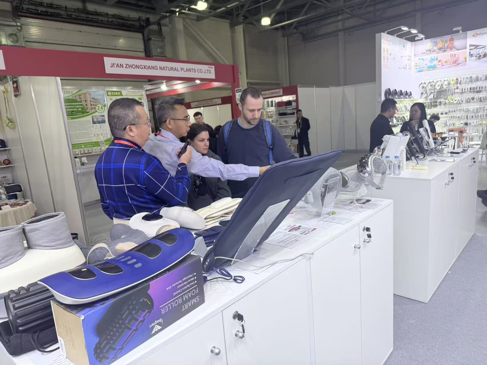 今日展会间,长锦成展位人气持续高涨,成为现场备受关注的焦点之一。公司专业团队以饱满热情、专业素养,与来自全世界各地的参会代表、经销商及健康爱好者深入交流,细致讲解长锦成产品的核心性能、科学结构与技术优势,全方位展示产品在美容美发、健康按摩、人体工程学等方面的创新成果。